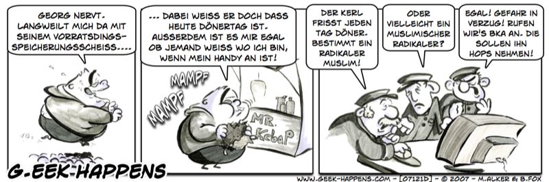 Diese Zeichnung entstand im Rahmen des Comicprojekts G.EEK HAPPENS in Zusammenarbeit mit Twister (STOP 1984). Weiterverwendung jederzeit unter Berücksichtigung der Creative Commons (by-nc-nd). Weitere Zeichnungen sind unter „Comics_und_Cartoons“ zufinden.